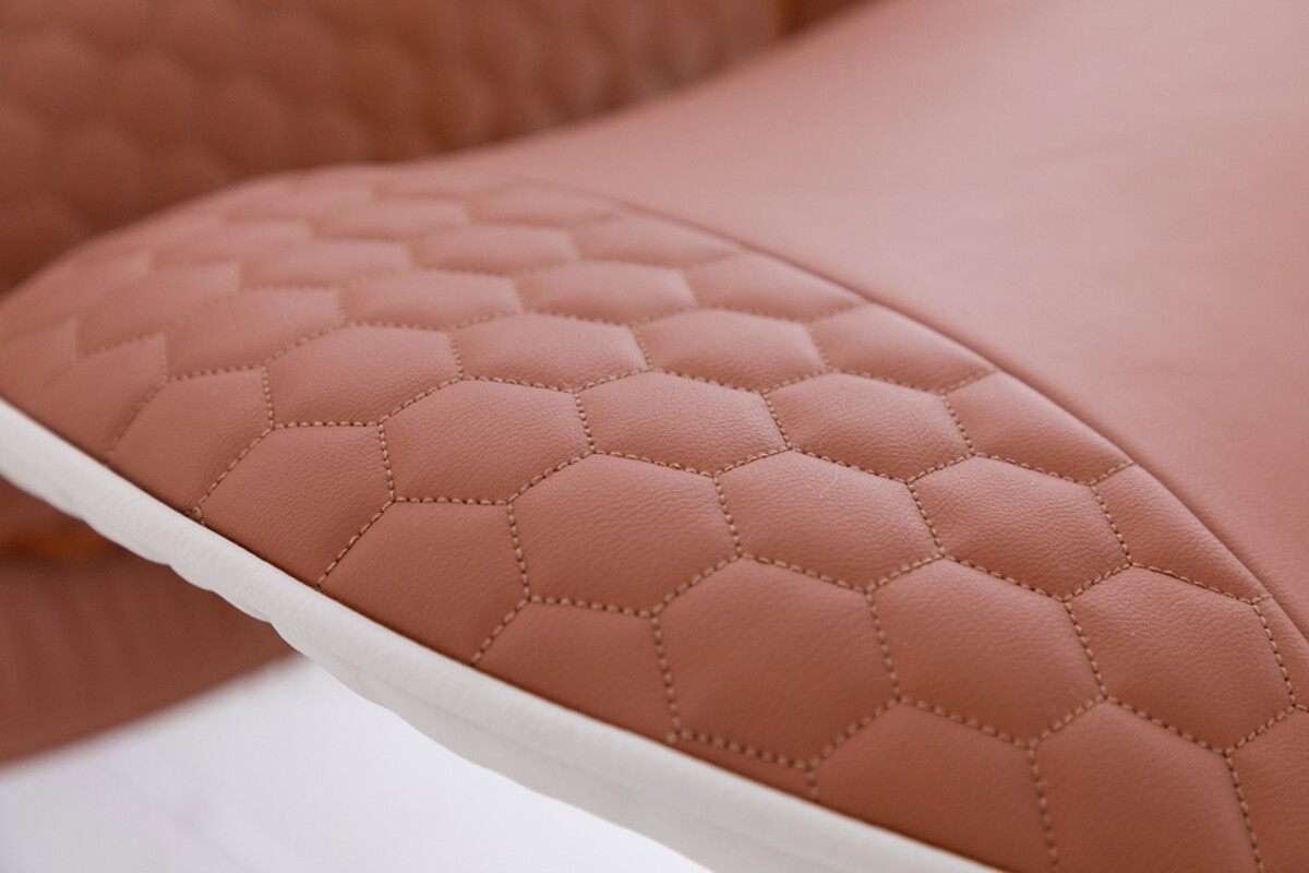 • design elegant care combină pielea, materialul textil și oțelul