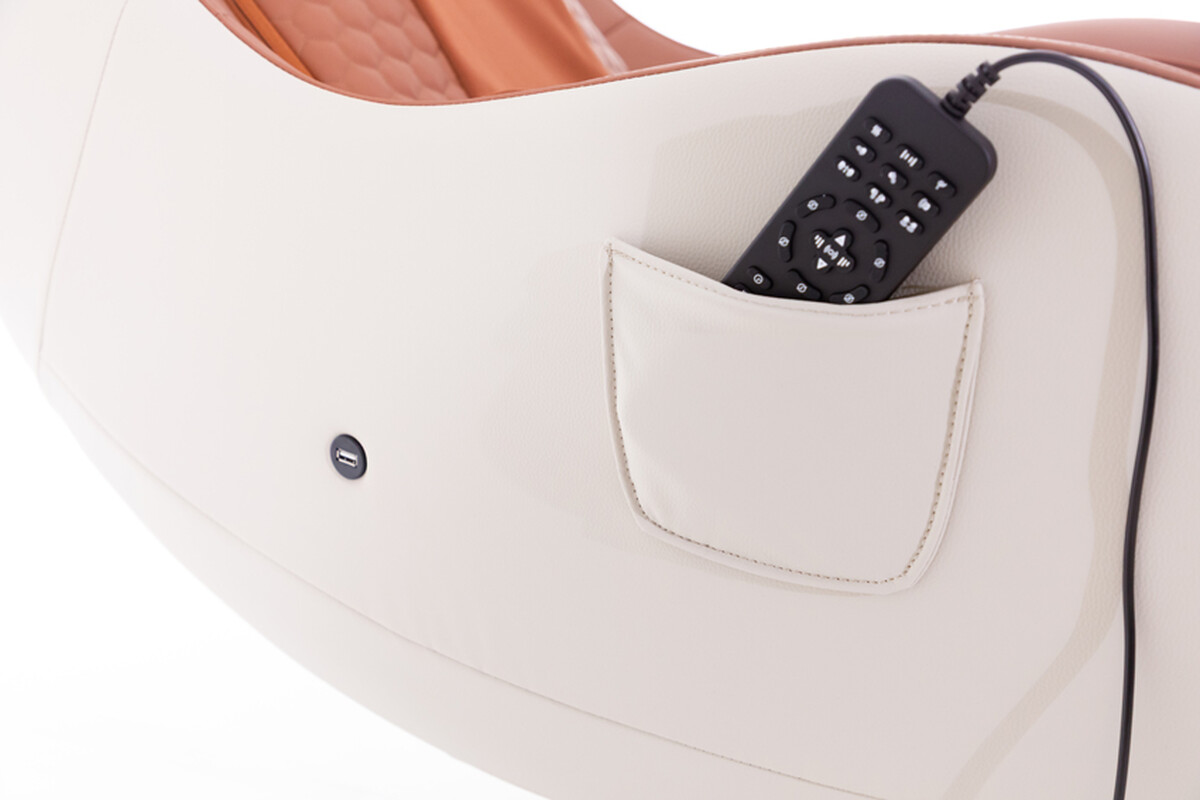Scaunul de masaj cu suport pentru picioare este completat de câteva detalii utile. Difuzoarele încorporate cu conectivitate Bluetooth vă permit să vă bucurați de masaj în timp ce ascultați muzica preferată, iar un port de încărcare USB vă permite să încărcați convenabil telefonul sau alt dispozitiv.