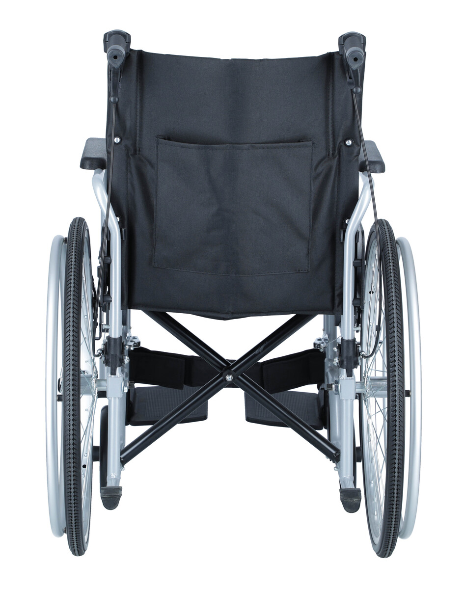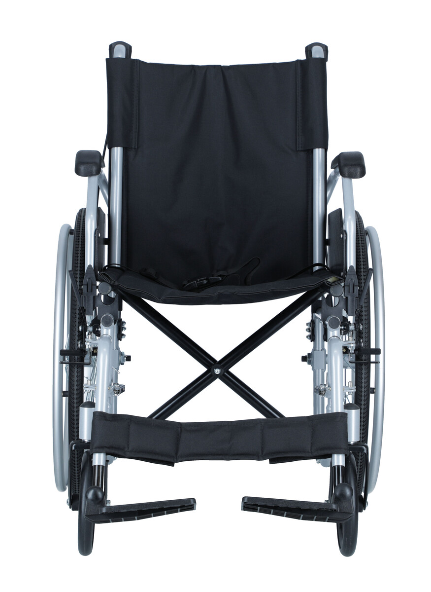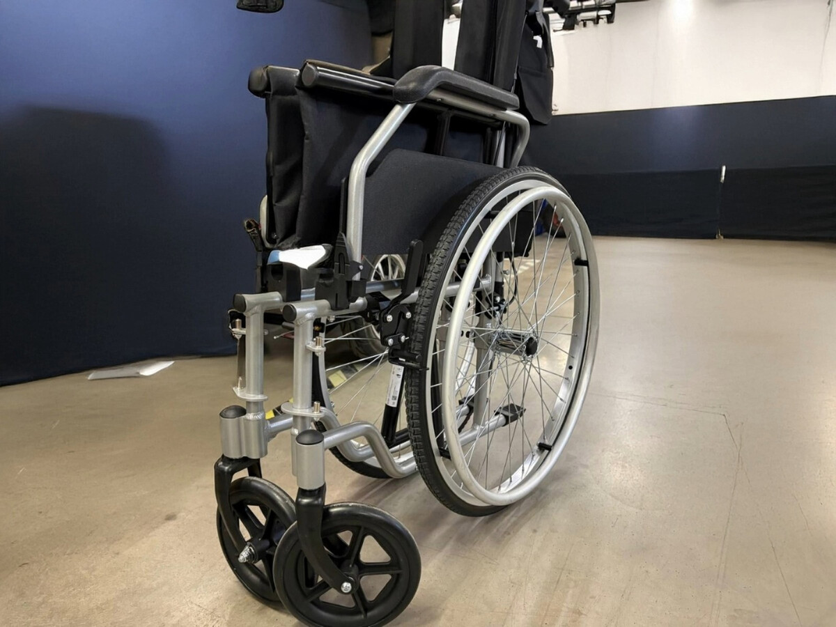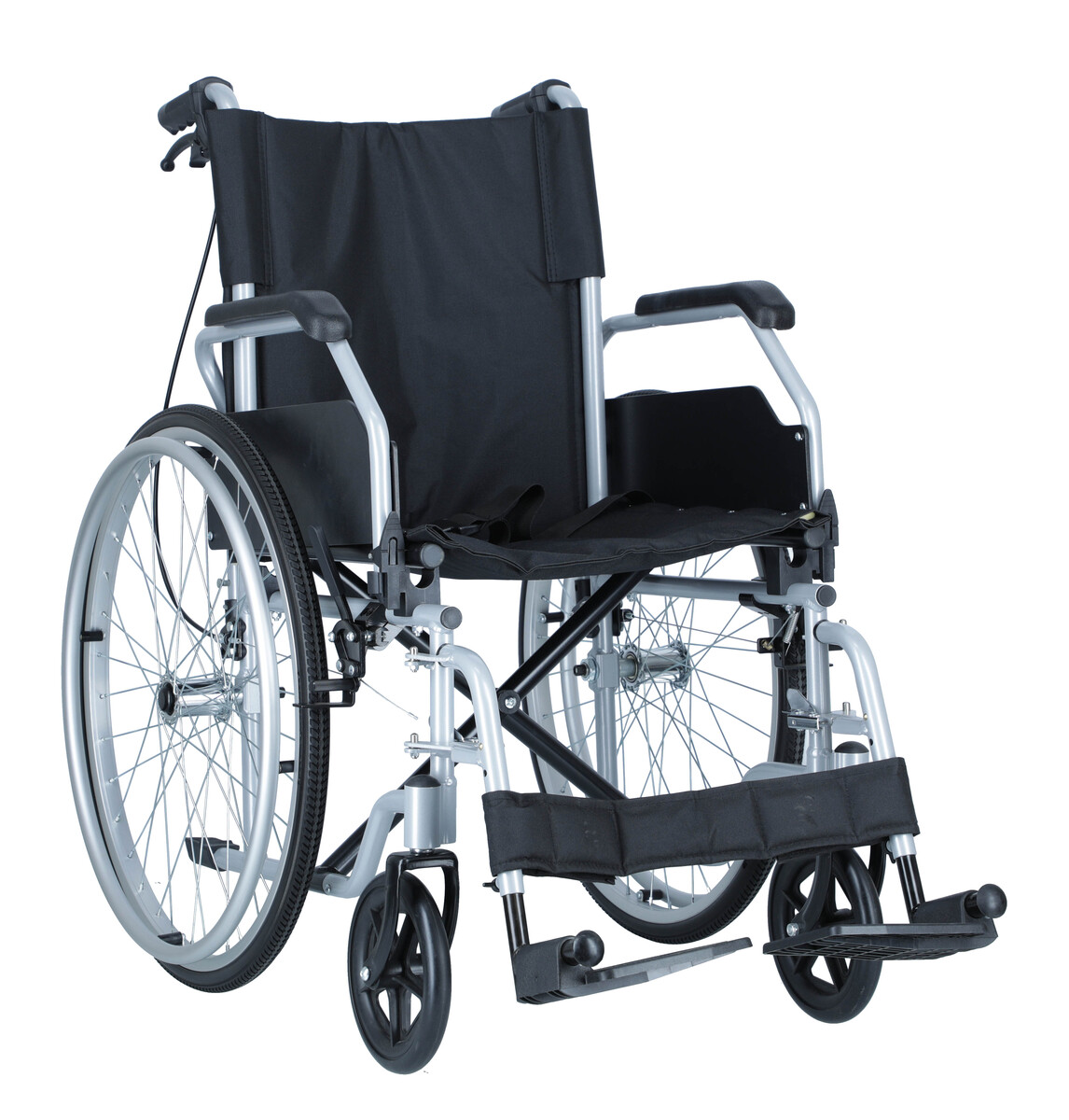 Scaunul cu rotile mecanic ușor este fabricat din aluminiu și este destinat persoanelor care au dificultăți de mișcare independentă și persoanelor cu dizabilități și restricții de mobilitate. Căruciorul este echipat cu frâne pentru însoțitor, care poate fi folosit de însoțitorul pacientului. Pe roțile mari există frâne de presiune, care pot fi folosite de pacient dacă acesta este neînsoțit și este obligat să oprească scaunul cu rotile. Roțile din față și din spate sunt fără cameră, ceea ce facilitează întreținerea acestora.