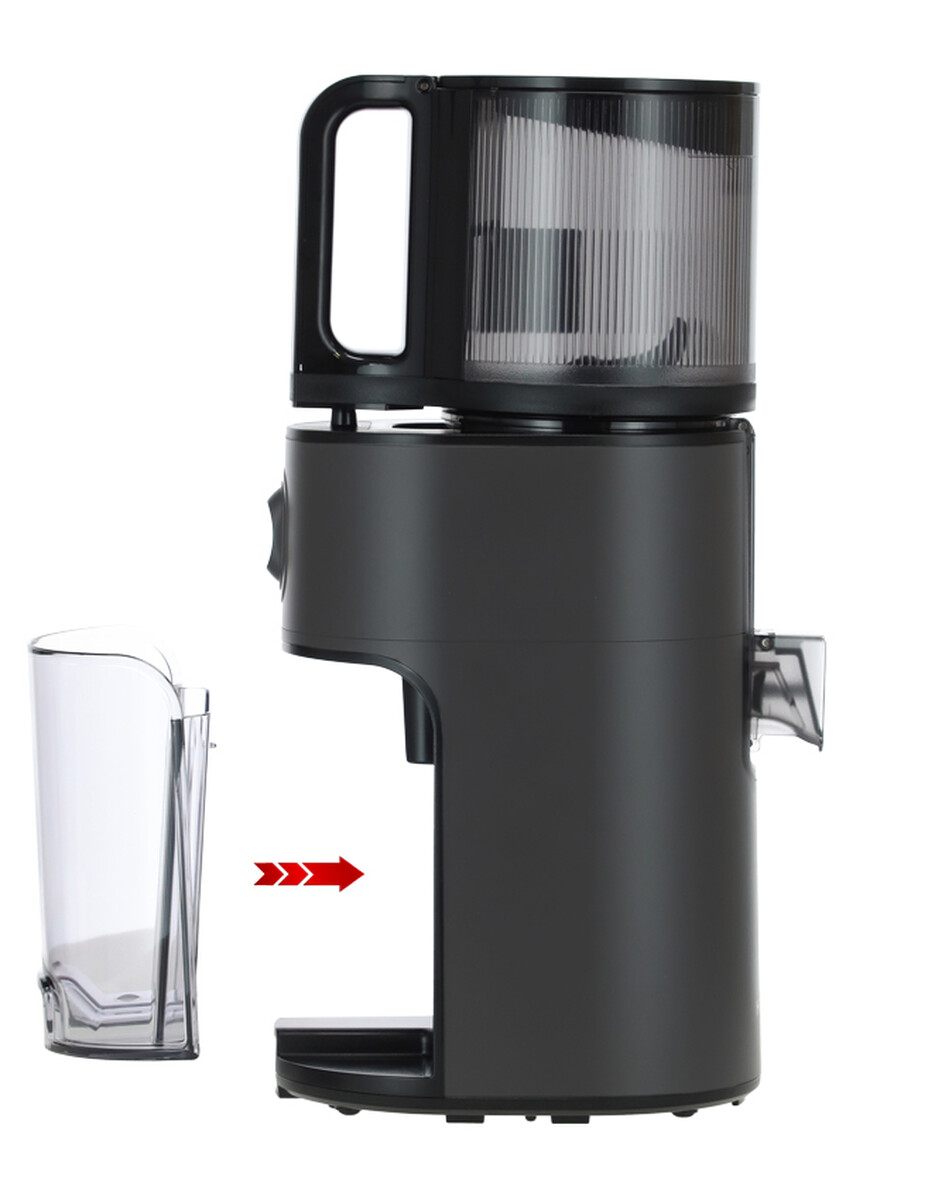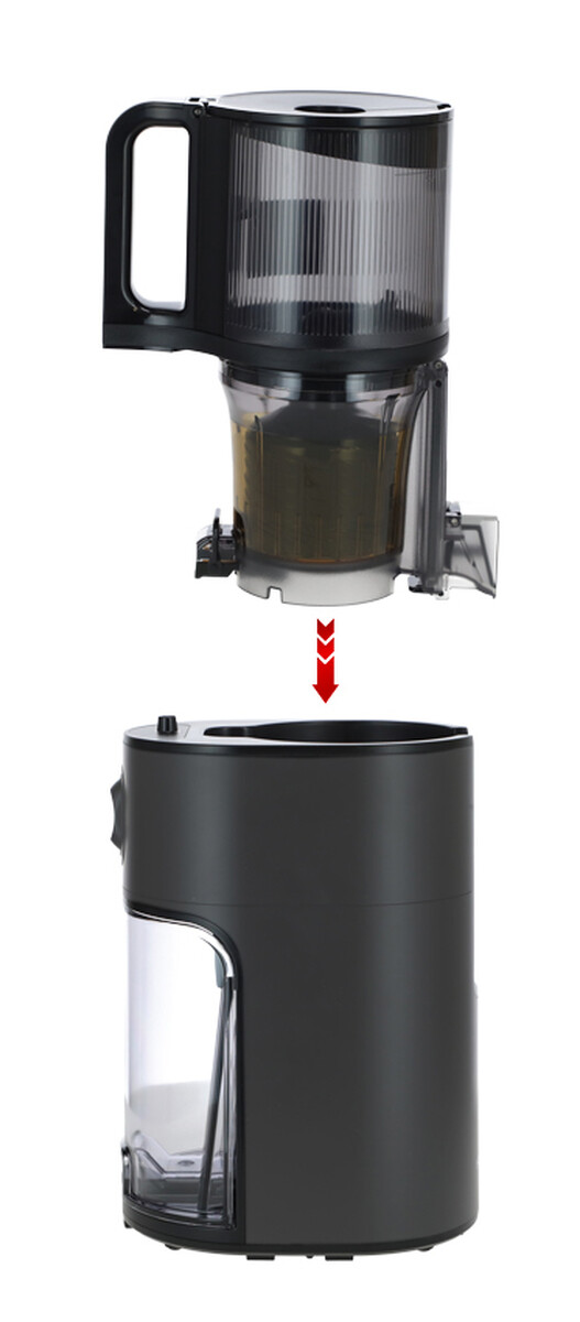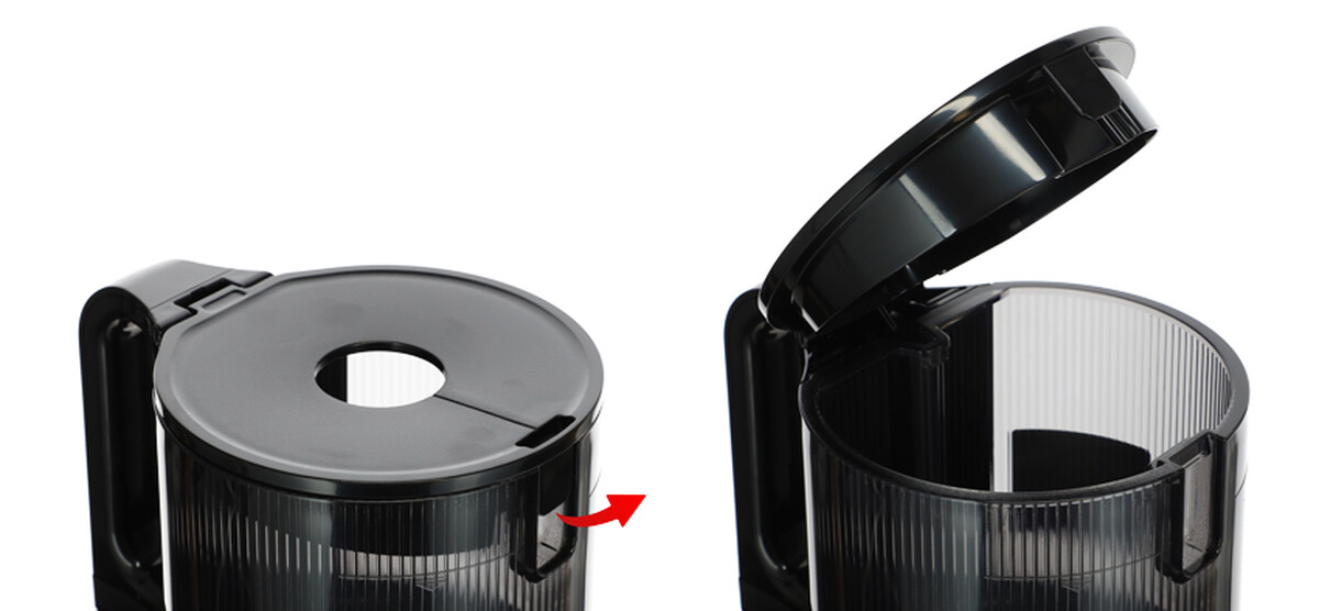 Dispozitivul este asamblat și dezasamblat într-un mod simplu, intuitiv. Capacul recipientului poate fi deschis și închis în siguranță în orice moment în timpul utilizării - atunci când este deschis, funcționarea storcatorului se oprește automat, iar când este închis, procesul de stoarcere se reia. În plus, există o mică deschidere pe capac, prin care poți adăuga și alte ingrediente chiar și când motorul funcționează fără a fi nevoie să-l deschizi.
