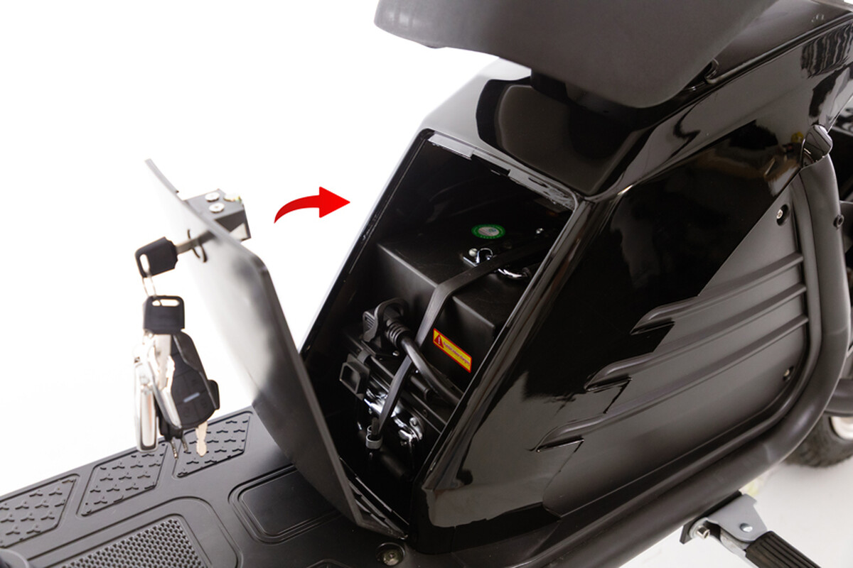 Scuterul este alimentat de un motor electric puternic de 3000 W, care poate face față cu ușurință pante abrupte de până la 40°. Energia este furnizată de o baterie de 60 V/40 Ah care vă permite să parcurgeți 50 până la 70 km cu o singură încărcare. Versiunea cu litiu a bateriei se remarcă prin durata lungă de viață, fiabilitatea ridicată și rezistența la uzură. O priză electrică obișnuită cu o tensiune de 110 - 240 V, 50/60 Hz este suficientă pentru a o reîncărca.