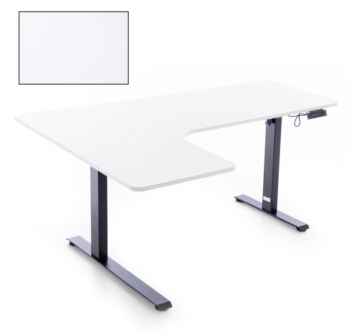 Birou reglabil pe înălțime UNIZDRAV 160x110 cm, alb - colț stâng