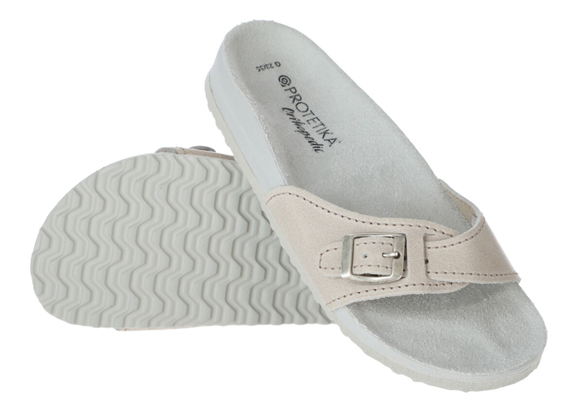 Pantofi medicali de vară de reabilitare cu suport transversal și longitudinal și o porțiune de picior în formă funcțională.