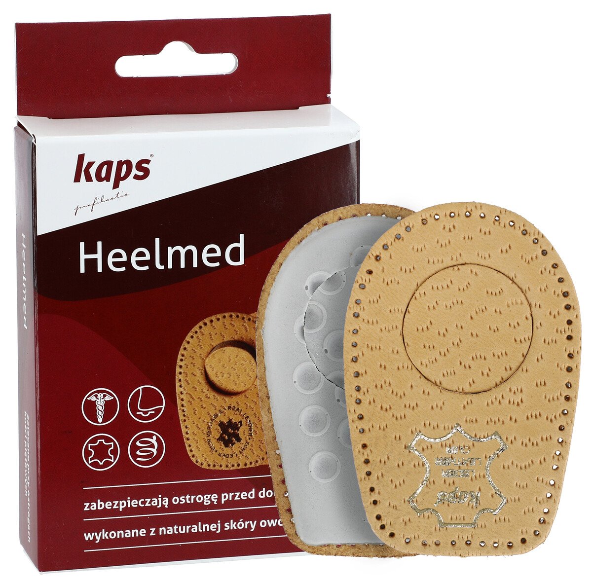 Branțul pentru călcâi Heelmed este un dispozitiv medical care echilibrează sarcina pe genunchi și glezne. După ce discul este îndepărtat se creează o deschidere care protejează pintenul dureros împotriva presiunii și suprafața dură a pantofului.